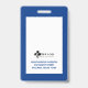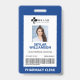 Um design simples de quadro com borda azul mínima, perfeito para uso médico, saúde, departamento de emergência, etc. As informações do crachá ID, logotipo, ID de foto, número de ID e código de barras opcional são projetados de forma organizada dentro do quadro branco central, com o título do cargo exibido ao longo da parte inferior do crachá. O verso apresenta o mesmo design com um endereço e logotipo.