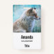 Nome de etiqueta com uma foto de uma raposa fofa sozinha. Colocado sobre um fundo azul de inclinação.