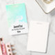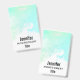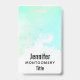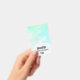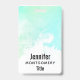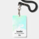 Um crachá com uma borda abstrata ao longo da parte superior com cores verde e azul em redemoinho. Um design suave e de verão.