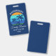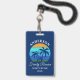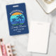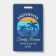 Reunião Familiar Summer Beach Palm Trees Sun Retro Style Marinho Blue Name Crachá com Lanyard. Excelente para um cruzeiro de barco de férias. Personalize com seu nome de família, ano ou data e muito mais.