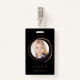 Adicione uma foto a este crachá chic para criar nomes de etiqueta personalizados para seus funcionários. Uma falsa borda rosa dourada rodeia sua foto, com nome e título embaixo de um fundo preto. Adicione seu endereço comercial ou informações adicionais ao lado inverso.