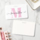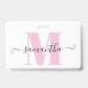 Um monograma de rosas claro ousado com bolinhas brancas, em conjunto com um nome de assinatura de troca cúbica e giro para crachás de funcionários. Na frente, mantenha a cor de fundo branca. Mas atrás você está livre para adicionar texto ou qualquer cor de fundo.