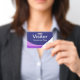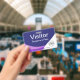 Crachá roxo com código QR personalizado para visit