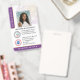 Crie uma aparência profissional com este crachá de ID de na moda. Um design elegante com padrão de estrela geométrica em cores gradiente. Este modelo de lado duplo é personalizado com a sua fotografia, nome, informações comerciais, símbolos de acreditação e um código de QR digitalizável. Personalize o texto para se adequar à sua empresa. Perfeito para um Notário Público, Agente de Assinatura de Empréstimo, Agente de Entrega de Confiança Notária Certificada, CNTDA, Notário Móvel, Apostille, profissional legal ou outro funcionário de negócios. Cores impressas: roxo escuro, lilás, branco e ouro. Compre a coleção on-line para obter ideias e suprimentos de produtos mais populares, projetados para notários!