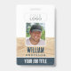 crachá de identificação da empresa na moda com textura impressa de madeira e letras arrojadas rústicas. Este modelo de lado duplo pode ser personalizado com sua foto, nome, cargo, logotipo, código QR e detalhes de contato. Uma etiqueta de identificação versátil que se adequaria a diferentes locais de trabalho e profissões, incluindo vendedores a retalho, funcionarios de hotel, funcionários escolares, restaurantes, bares, centros externos, comidas de saúde, carpinteiros, artesãos tradicionais, empregos de jardinagem, conferências, pequenas empresas e muito mais! Cores: madeira clara, branca e azul escuro. Compre a coleção para ideias de produtos mais populares para venda online com o mesmo design de madeira.