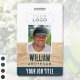 Crachá Rustic Employee ID Name Photo Woodgrain Blue