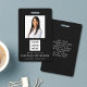 Personalize esses crachás verticais com uma foto do funcionário, nome, cargo e empresa. Adicione seu logotipo. Para mais informações, um campo de texto personalizável adicional está localizado no verso.