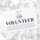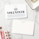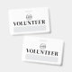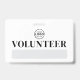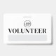Um design de crachá de voluntário simples e profissional, perfeito para eventos, empresas ou organizações que dependem de voluntários. "Voluntário" é exibido de forma proeminente no topo, com espaço abaixo para o nome do evento ou empresa e data.