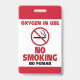 Crachá Sem fumar - Oxigênio em uso - Sem fumaça