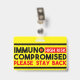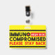 Este crachá é para aqueles de nós na população que estão em risco mais alto de pegar qualquer doença que esteja ocorrendo. Seja por causa de um medicamento que faz o seu sistema imunitário fraco, você tem uma condição de saúde que o afeta, ou você é uma geração mais nova ou mais madura, esse crachá é para você. O termo social, ou melhor descrito como distanciamento físico, fez as rondas e pessoas estarem mais conscientes da sua importância, mas gentilmente lembrem as pessoas de serem cautelosas, especialmente ao seu redor ou a um ente querido com este crachá. Coloque-o em suas roupas, guias de mobilidade, tanque de oxigênio ou bolsa de engrenagens crônicas.
