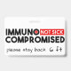 Este crachá é para aqueles de nós na população que estão em risco mais alto de pegar qualquer doença que esteja ocorrendo. Seja por causa de um medicamento que faz o seu sistema imunitário fraco, você tem uma condição de saúde que o afeta, ou você é uma geração mais nova ou mais madura, esse crachá é para você. O termo social, ou melhor descrito como distanciamento físico, fez as rondas e pessoas estarem mais conscientes da sua importância, mas gentilmente lembrem as pessoas de serem cautelosas, especialmente ao seu redor ou a um ente querido com este crachá. Coloque-o em suas roupas, guias de mobilidade, tanque de oxigênio ou bolsa de engrenagens crônicas.