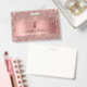 As lascas de tendências quíticas apresentam fundo de folha de crachá dourada em rosa e gotas de brilho (nota que não será usada nenhuma lente real) e ícone de spray de limpeza na cor rosa de ouro. Perfeito para serviços comerciais ou residenciais de limpeza, empregada doméstica, empregada doméstica ou faxineira.