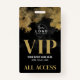 Acesso Total Seu Logotipo Elegante Crachá Preto Dourado VIP. Um preto e branco com dourado (na verdade, não é um brilho ou folha, é apenas uma cor). Ótimo para desfiles de moda, shows, grandes eventos especiais como conferências, palestrantes, e pode até funcionar para uma festa de aniversário como uma festa de 16 anos, ou qualquer outra festa onde você queira fazer seus convidados se sentirem especiais, como uma celebração de Ano Novo. Um visual simples moderno, porém elegante, com um espaço para adicionar sua empresa ou até mesmo logotipo no topo (se estiver usando para um evento especial, você pode usar um ícone fofo em vez do logotipo). Na parte inferior está uma fonte serifada em negrito misturada com uma tipografia simples, com VIP, o nome do evento, data e 'Passe de Acesso Total'. Você pode alterar todas as informações de texto e cores deste c