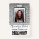 O brilho preto e prateado brilha deliciosamente atrás de um molde fotográfico com quadro preto e branco. Atualizar facilmente o nome e o título profissional de cada crachá de funcionário personalizado. Há também espaço para o logotipo de uma empresa — excluir para deixar o vazio. A parte traseira apresenta mais brilho inverso e uma modelo de imagem perfeita para códigos de bar dos funcionários. Disponível em muitos outros estilos e cores.