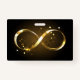 Símbolo infinito de joias Dourado com estrelas douradas sobre fundo preto. Design com estrela dourada.