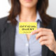 Este design minimalista de crachá apresenta a mensagem "CONVIDADO OFICIAL" e um nome de empresa personalizável ou outra mensagem personalizada. Um crachá como este pode ser usado para indicar que uma pessoa é um convidado conhecido e autorizado ou visitante em uma empresa ou local de trabalho. [~Z0000307]