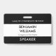 Crachá Speaker Name Badge QR Black White Logo ID Event