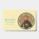 São Pedro Claver (1580-1654) foi um padre jesuíta espanhol e missionário. Em 1610, São Pedro se ofereceu para servir no Novo Reino de Granada, nas Américas, que abrangia o Panamá, a Colômbia e a Venezuela atuais. Lá, trabalhou por quarenta anos ministrando aos escravos após a chegada a Cartagena, um importante centro do comércio transatlântico de escravos, e nas plantações do campo vizinho. Seus esforços incansáveis não apenas para converter os escravos ao catolicismo, pregando Cristo crucificado, mas para aliviar seus sofrimentos, lhe renderam o epíteto "Escravo dos Africanos". + Aqui, São Pedro é mostrado vestido com roupas jesuítas - uma batina preta e capa com colarinho. Ele segura uma simples cruz de madeira marrom e uma coroa de espinhos, símbolos de Jesus como "um homem de dores e familiarizado com a dor" (Isaías 53:3). A imagem está encerrada em uma moldura interna reminiscente de uma janela gótica em forma de rosa (ou roda) de oito pétalas; os cantos da moldura externa simples e quadrada são preenchidos com cardos heráldicos. + São Pedro Claver morreu em 8 de setembro de 1654 de causas naturais após uma longa doença. É o santo padroeiro da