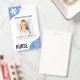 Crachá de fotos de um funcionário médico com estetoscópio e design cardíaca. A amostra mostra o título ENFERMEIRO, mas pode ser editado para qualquer posição do funcionarios. Inclua um logotipo ou exclua a imagem de exemplo. ALTERAÇÃO DE COR DE FUNDO: A cor azul de fundo pode ser alterada clicando na guia PERSONALIZAR MAIS. Entre em contato com o designer se quiser que este design seja modificado ou se precisar de assistência com cores. DICA DA FOTO: Para obter resultados mais rápidos/melhores, escolha uma foto com o assunto no meio e/ou pré-plante para uma forma quadrada ANTES de carregar e ela preencherá o espaço de fotos perfeitamente. Entre em contato com o designer se você quiser que este design seja modificado ou precisar de assistência com um código de cor específico.