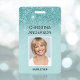 Crachá Teal Blue Glitter Nome do Funcionário Foto Corpora