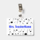 Características deste design do crachá um teste padrão de vário - a música feita sob medida nota. Pôde ser apreciada por um músico, por um compositor, por um cantor, ou por alguém mais quem gosta realmente da música. Igualmente caracteriza um nome personalizado no texto colorido azul dentro de uma banda colorida branco. Um crachá como este podia talvez ser vestido por um professor, por um professor, por um tutor ou por um professor durante as semanas adiantadas de um ano escolar ou de um curso. Pôde ajudar os estudantes a aprender e recordar o nome do seu professor. [~Z0000175]