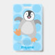 Crachá Um desenho animado de pintinho de pinguim feliz e