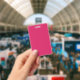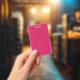 Crachá um fundo rosa com borda branca
