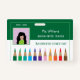 Um crachá horizontal verde e branco com lápis de cor arco-íris no fundo. Este crachá profissional de design é perfeito para a pré-escola, jardim de infância, professores de ensino básico, médio ou segundo grau. Pode ser ajustado para qualquer outro funcionarios escolar também. Ele vem em várias cores e também está disponível em formato vertical. Verifique a coleção para mais. © ArianeC Ilustrações — Todos os direitos reservados