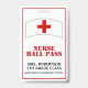 Crachá da passagem de salão da enfermeira de estudante do professor feito no branco com gráficos de um quadro e de uma cruz vermelhos. Personalize os campos do texto para ler o que você quer.