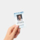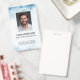 Crachá de ID de funcionário vertical moderno em um design de gradiente azul com uma grande área de fotos, nome editável, título, logotipo da empresa e código de barras. Perfeito para equipes corporativas, de varejo ou de escritório. Fácil de personalizar para as suas necessidades profissionais.