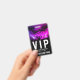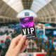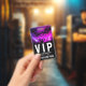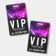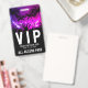 Este crachá VIP apresenta um design cor-de-rosa, roxo e preto, perfeito para um concerto ao ar livre ou uma festa com uma vibração Coachella. Ao longo do topo, as silhuetas de palmeiras esticam-se através de um vibrante céu rosa e roxo, estabelecendo um humor de festival divertido e energético. A imagem desaparece em preto na parte inferior, onde o nome do evento, a data e "All Access Pass" são exibidos em uma fonte limpa, em negrito, sans serif. "VIP" é mostrado no topo no mesmo estilo simples para uma aparência moderna e elegante. O mesmo design aparece de ambos os lados para um sentimento polido e coeso. Todo texto e cores são totalmente personalizáveis, para que você possa fazer com que ele corresponda perfeitamente ao seu evento.