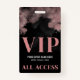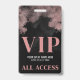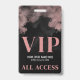 Todo o Rosa de acesso Elegante Crachá VIP Dourado. Este design apresenta um topo metálico cor-de-rosa-claro, com uma mistura de fontes cor-de-rosa e brancas, emparelhado com um layout preto e branco para uma víbora de tendências e na moda. Excelente para concertos, desfiles, conferências ou celebrações como um doce partido de 16 ou Ano Novo. Uma fonte serif em negrito na parte inferior é misturada com tipografia limpa para mostrar VIP, o nome do evento, a data e "Todos os acessos passados". Todo texto e cores são totalmente personalizáveis.