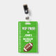Acessório de crachá com tema de futebol para festa de despedida de solteiro com gráficos de um campo de futebol verde e uma bola de futebol marrom. Personalize os campos de texto brancos de acordo com as suas necessidades. Ótimo para festas de aniversário e despedida de solteiro.