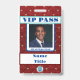 O Crachá Plástico VIP PASS - Vertical, estes crachás são perfeitos para eventos especiais, reuniões e apresentações. Clique em Personalizar e personalize este crachá com uma foto, logotipo e texto. O VIP PASS mede 2,13 polegadas x 3,38 polegadas, é feito de Plástico PVC, é durável e não desbota ou rasga.