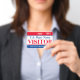 Crachá para visitantes decorado em cores vermelha, branca e azul. Excelente para governos e visitas.