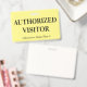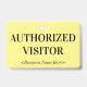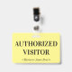 Este design clássico de crachá apresenta a mensagem "VISITANTE AUTORIZADO", e um nome de empresa personalizável ou outra mensagem personalizada. Um crachá como este pode ser usado para identificar que alguém em um local de trabalho ou empresa é um convidado/visitante autorizado. [~Z0000307]