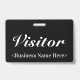 Este sofisticado design de crachá apresenta a mensagem "Visitante" e um nome de empresa personalizável ou outra mensagem personalizada. Um crachá como este pode ser usado para identificar que alguém no local de trabalho ou em negócios é um convidado/visitante autorizado. [~Z0000307]