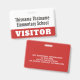 Preencha o nome da escola e altere a cor de fundo para fazer um crachá de identificação personalizado para os visitantes.