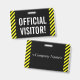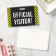 Este design de crachá atraente apresenta a mensagem "VISITANTE OFICIAL!". Ele também apresenta listras de advertência amarelas e pretas. A parte de trás apresenta um nome de empresa personalizável ou outra mensagem personalizada. [~Z0000286]