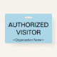 Este design básico do crachá contém a mensagem "AUTORIZED VISITOR" e um nome de empresa personalizável ou outra mensagem personalizada. Um crachá como este pode ser usado para identificar que alguém no local de trabalho ou em negócios é um convidado/visitante autorizado. [~Z0000307]