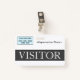 Este design elegante apresenta a mensagem "VISITOR" e um nome personalizável da empresa ou outra mensagem personalizada. Um crachá como este poderia talvez ser usado para indicar que uma pessoa é um convidado ou visitante conhecido e autorizado numa empresa ou no local de trabalho. [~Z0000307]