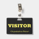 Este design de crachá atraente apresenta a mensagem "VISITOR" e um nome personalizável da empresa ou outra mensagem personalizada. Um crachá como este poderia talvez ser usado para indicar que uma pessoa é um convidado ou visitante conhecido e autorizado numa empresa ou no local de trabalho. [~Z0000307]