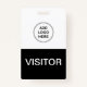 Crachás de visitantes simples e econômicos, com o logotipo amigável, modelo de design de dois lados que você pode usar para substituir nosso modelo de logotipo por seu próprio logotipo ou gráfico comercial. Usado para entregar visitantes e convidados a um negócio, local ou convenção.