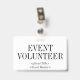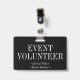 Este design de crachá de estilo clássico apresenta a mensagem "VOLUNTÁRIO DO EVENTO". Um crachá como este poderia ser usado para mostrar que o usuário é um representante oficial em um evento. [~Z0000307]