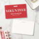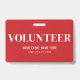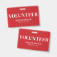Um design de crachá de voluntário simples e profissional, perfeito para eventos, empresas ou organizações que dependem de voluntários. "Voluntário" é exibido de forma proeminente na parte superior, com espaço abaixo para o nome do evento ou empresa e data.