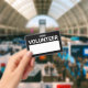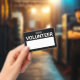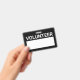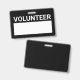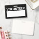 Nome de etiqueta Voluntário de Vazio Preto com o título "voluntário" na fonte branca bold sans serif com espaço em vazio branco para o seu nome em fundo preto.