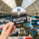 Crachá Voluntário Negro com título e nome do grupo em fontes de sans serif em negrito branco em fundo preto. Perfeito também para estagiário, tripulação, funcionarios, grupo, equipe e muito mais.