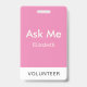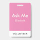 Crachá Voluntário Personalizado Rosa Simples Pergunte-me