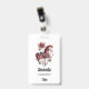 Name tag with a cute retro style carousel horse. Drawn in Pretty pink colors with fancy flowers.