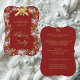 Cranberry Red Elegant Snowflake Convites da festa Corporativa Feriado de Neve apresentam um fundo de morango vermelho com texto dourado, flocos de neve dourados e prateados, e um arco de ouro com dois sinos de geleia. É fácil adicionar suas informações de evento de feriado a este belo e elegante convite para festas de amora, ouro e prata antes de fazer pedidos. Seja para uma pequena empresa com dez convidados ou uma grande empresa festeira anual por mil anos, este convite para festas bonito atende às suas necessidades!